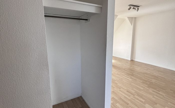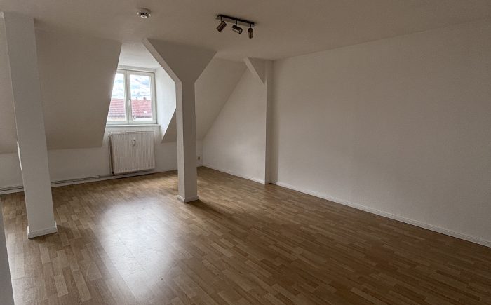 | | 48m² | 1 ZimmerDiese charmante Dachgeschosswohnung überzeugt durch ihren praktischen Schnitt und die durchdachte Raumaufteilung. Der große Wohnraum ist so gestaltet, dass er trotz offener Gestaltung optimal nutzbar ist: Durch die Balken lässt sich der Bereich perfekt in Schlaf- und Wohnzone mit Bett und Couch unterteilen.