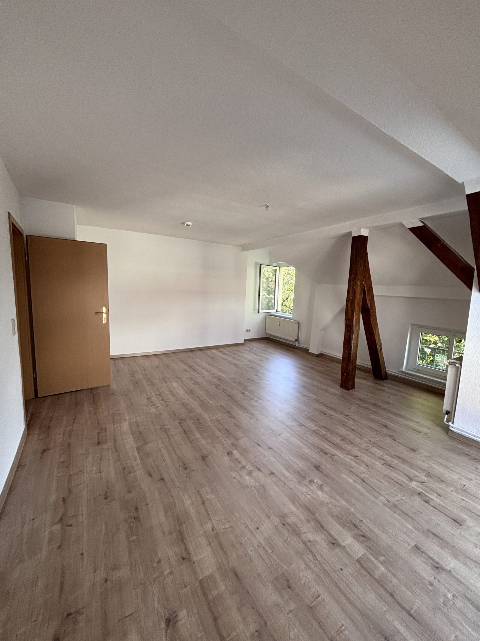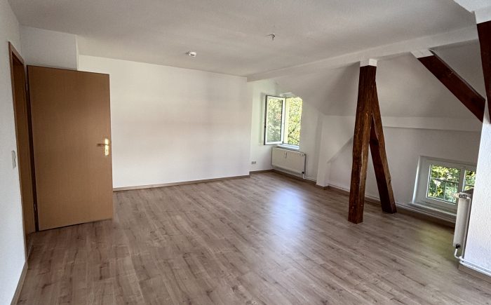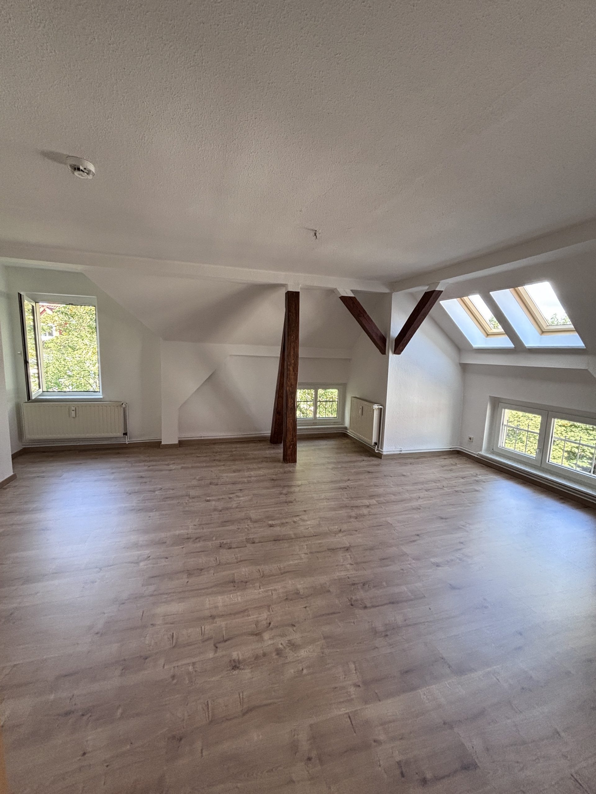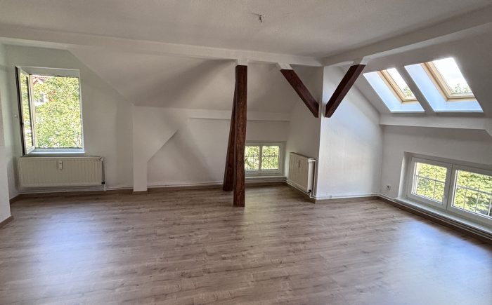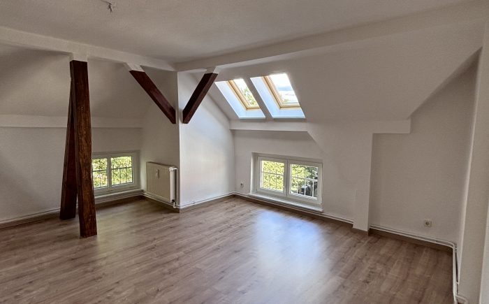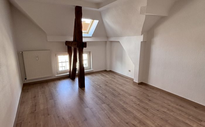 | | 61m² | 2 ZimmerDiese schöne Dachgeschosswohnung überzeugt durch ihren besonderen Charme und eine helle Wohnatmosphäre. Alle Zimmer sind mit neuem Laminatboden ausgestattet und verfügen über sichtbare Balken, die der Wohnung einen gemütlichen Charakter verleihen.