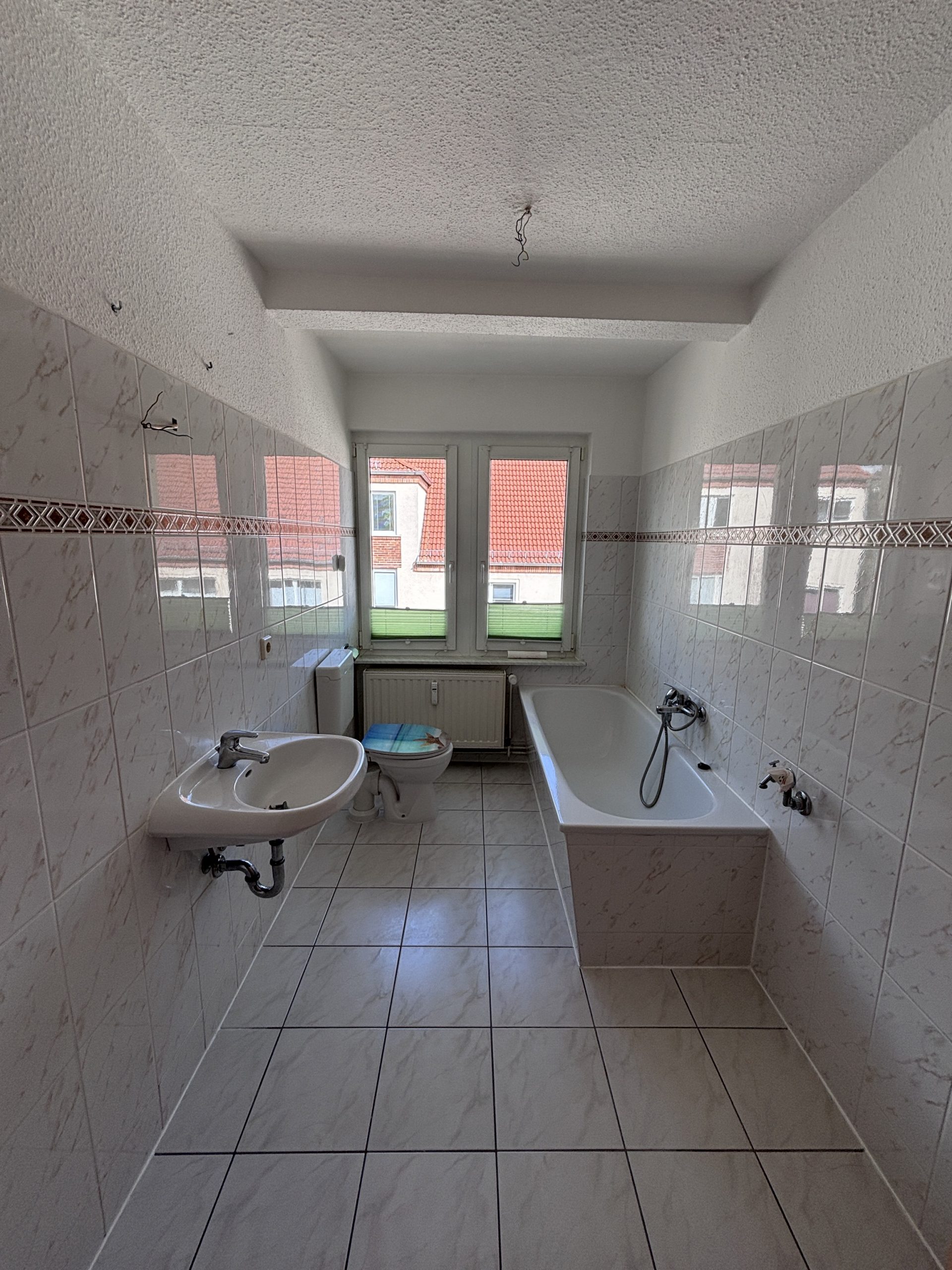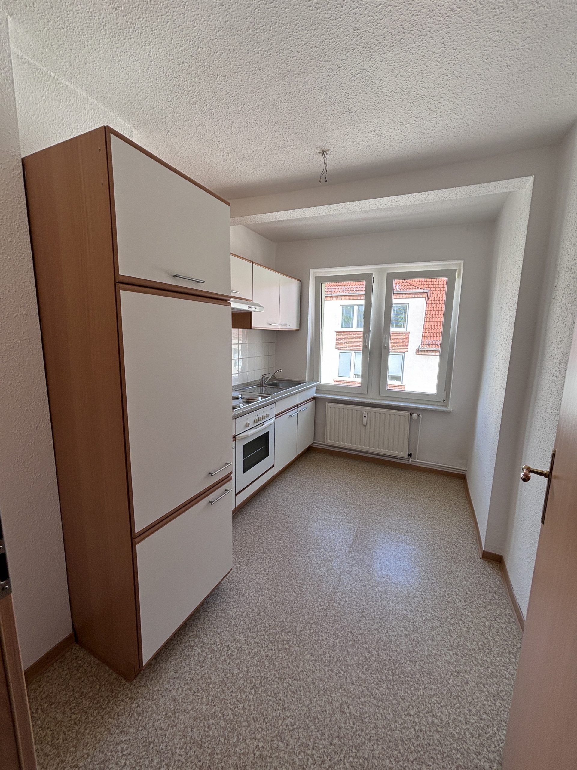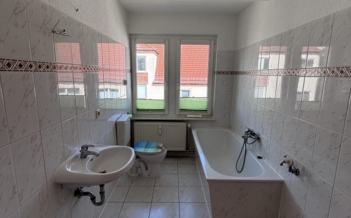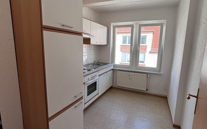 Dank der zahlreichen Fenster sind die Räume lichtdurchflutet und bieten ein freundliches Wohnambiente. Die Küche ist mit einer praktischen Einbauküche ausgestattet. Das Badezimmer verfügt über ein Fenster, ist gefliest und mit einer Badewanne versehen.