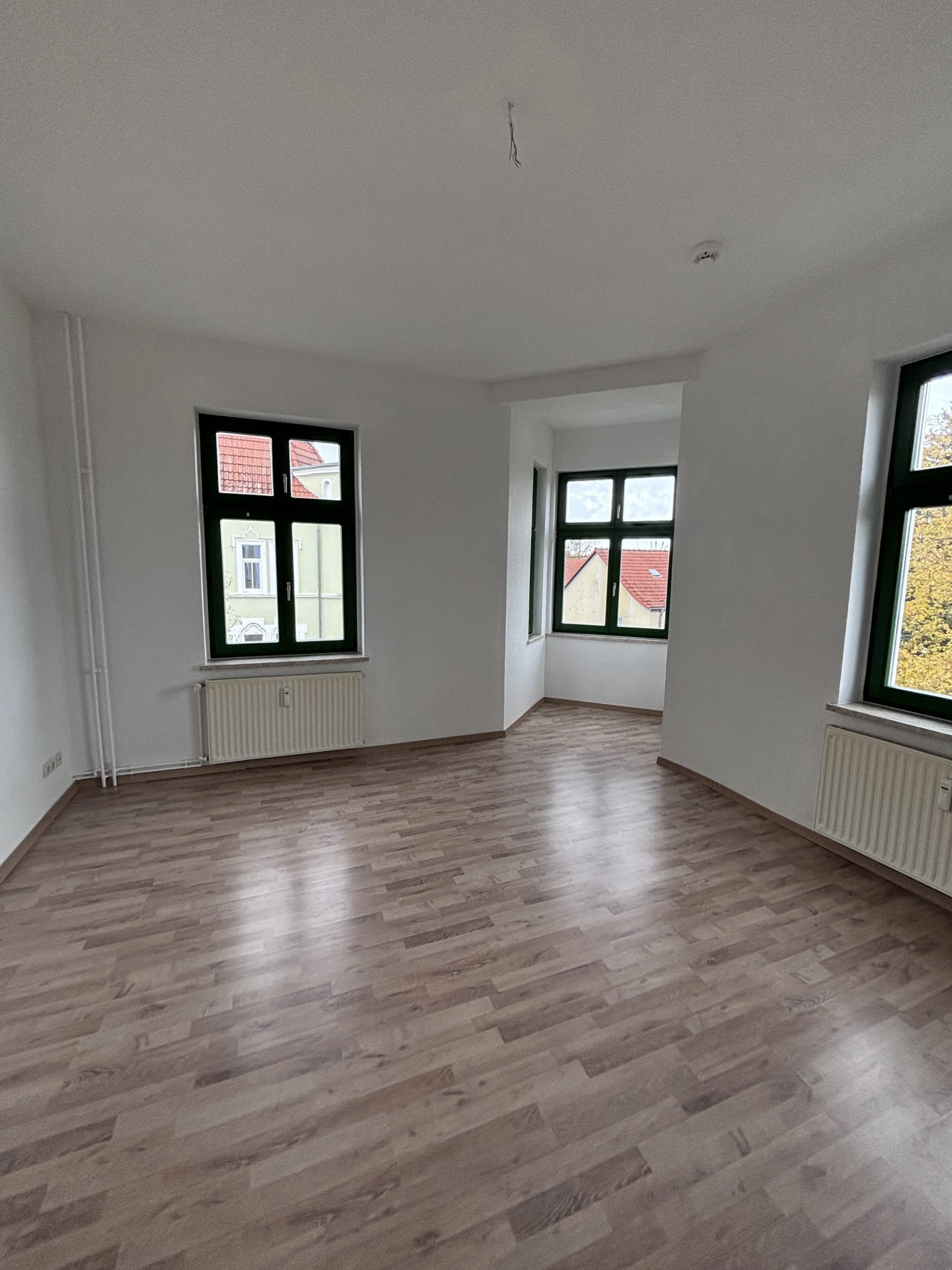 Ein besonderes Highlight ist das Wohnzimmer mit einem stilvollen Erker, der dem Raum einen einzigartigen Charakter verleiht und für viel Licht sorgt. Das halbe Zimmer eignet sich ideal als Arbeitszimmer, begehbarer Kleiderschrank oder Abstellraum.
