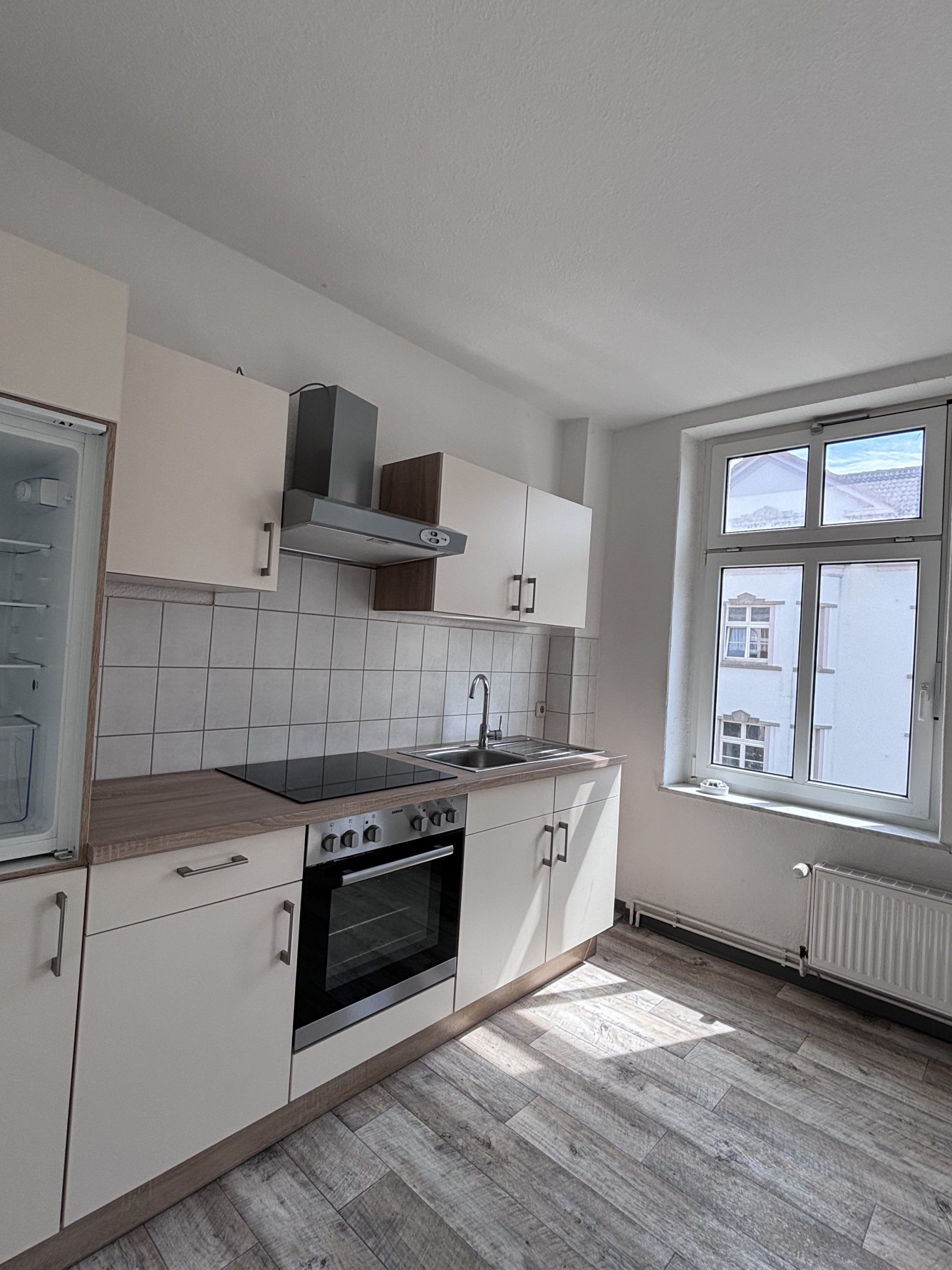 Die Küche ist mit einer schicken Einbauküche versehen und bietet alles, was man für den Alltag benötigt. Das Badezimmer ist gefliest, verfügt über ein Fenster und ist mit einer Badewanne ausgestattet – ideal zum Entspannen.