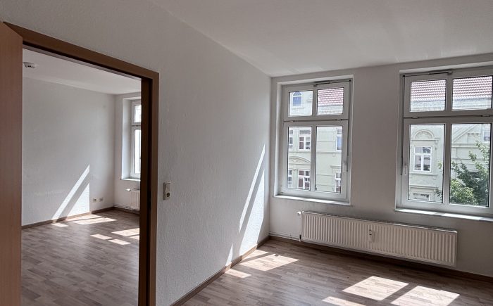 Diese schöne 2-Zimmer-Wohnung überzeugt durch ihre freundliche und einladende Atmosphäre. Beide Zimmer sind mit modernem Laminatboden ausgestattet und wirken durch die großen Fenster besonders hell.